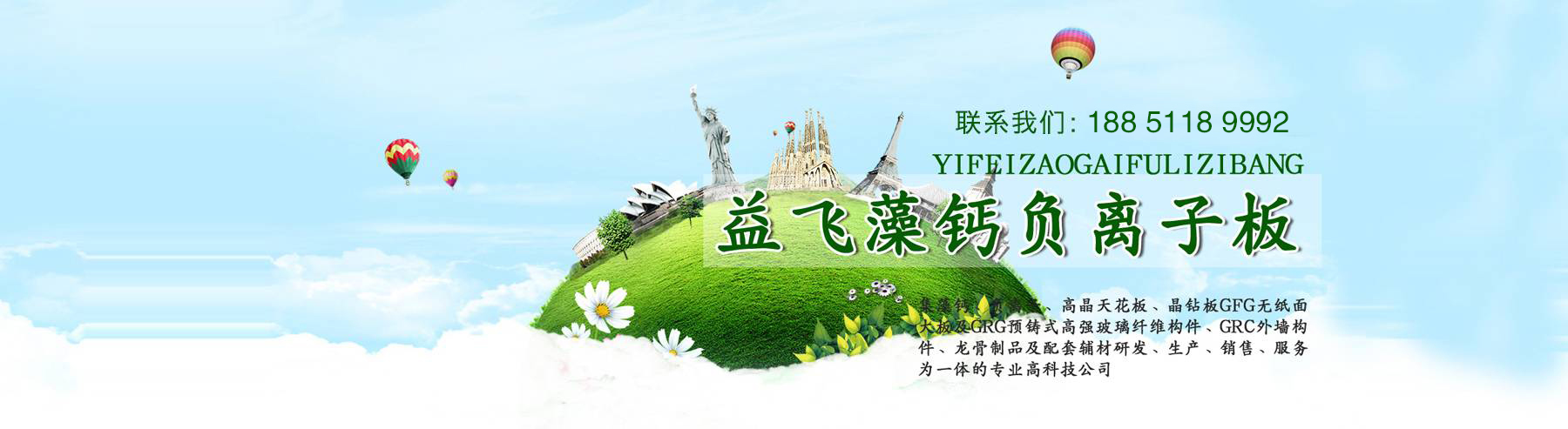 江蘇益飛環(huán)?萍加邢薰, 是一家集藻鈣板、負(fù)離子生態(tài)健康板、高晶天花板、硅晶板、晶鉆板GFG無(wú)紙面大板及GRG預(yù)鑄式高強(qiáng)玻璃纖維構(gòu)件、GRC外墻構(gòu)件、龍骨制品及配套輔材研發(fā)、生產(chǎn)、銷(xiāo)售、服務(wù)為一體的專(zhuān)業(yè)科技公司。